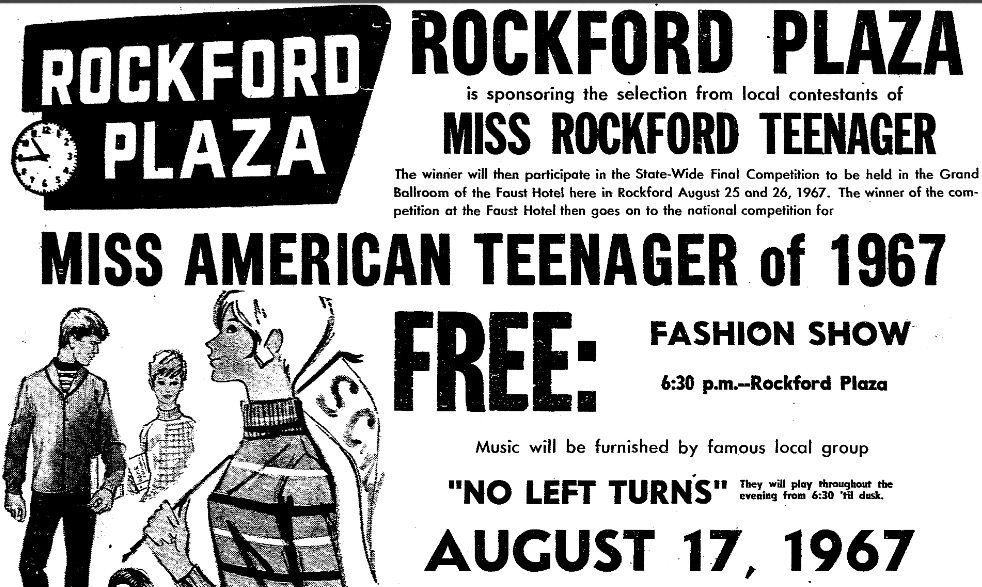 We were honored with an invitation to play for the Miss Rockford Teenager fashion show and pageant. As honorable a gig as it might have been, I remember very little about it. I do recall we stood around for quite some time before actually performing. Though our very short set closed with We Gotta Get Out of this Place, it was nonetheless an honor and a privilege for us to have been a part of the festivities.